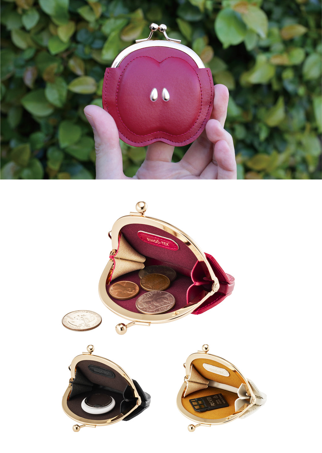 りんごがま口コインケース ワインレッド